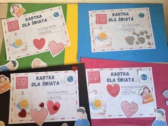 – przygotowaliśmy „Kartki dla świata” – podczas zajęć z psychologiem dzieci tworzyły pocztówki